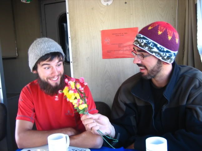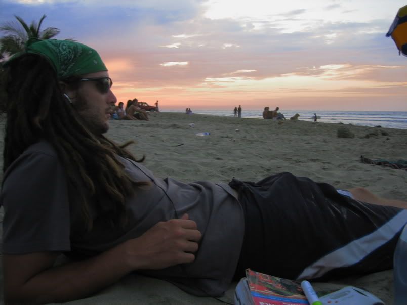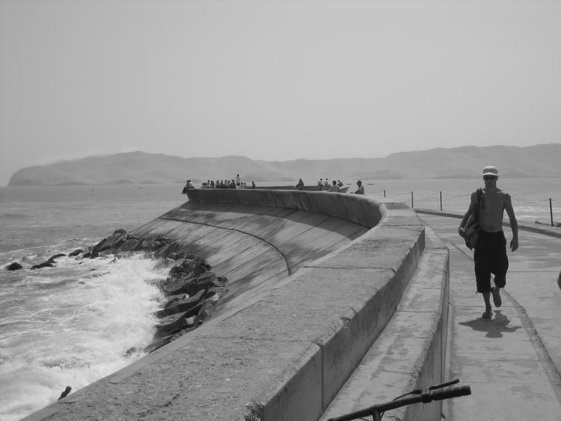 La punta c'est une espece de péninsule super fine avec des palges de chaque cotés. Peut-etre 500 metres de large, pas plus. Et je'ai mangé la meilleure cevicha ever: poisson cru, moule, crab, langoustine, calmar, pievre, tout ca mariné dans un espere de jus de citron de piment fort. Meme moi qui n'aime pas trop les fruits de mer, j'ai vraiment adoré. Sur le chemin du retour, on est arreter pour jouer au football (le vrai, pas le football americain) avec des locaux. Trop nice.On a eu tellement de fun. Mon chum Vince ne voulait tellement pas arreter qu'il s'ait fait des ampoules jusqu'au sang. Vous allez me dire que le fait qu'il ait jouer nu pieds sur le beton n'a pas aidé, ben vous avez entierement raison. Il a meme du aller a l'hopital la journee de son depart pour les USA (le lendemain). Ca avait deja enflé, et il esperait avoir une place VIP sur l'avion a cause de ca. J'ai vu pour la premiere fois des infirmiere se pogner le beigne avec les mains dans les poches. Certaines regardaient meme les photos a Vince sur son appareil. Tout un choc pour un Quebecois!