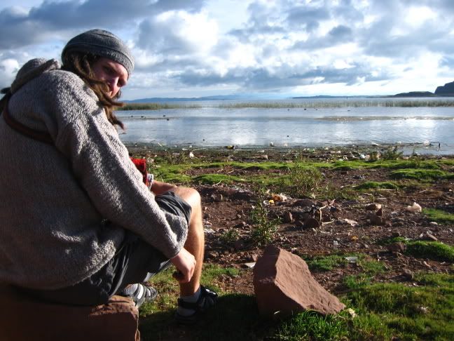 Bon, apres Uyuni et la death road, on s'est dirigés tranquilement pas vite vers le Peru. Première halte, le lac Titcaca, et son ile la plus fameuse: Isla del Sol. Un mini 2 jours (arrivée a 4 PM et depart le lendemain a 10:30 du matin) ien relaxe a marcher tranquilo sur l'ile. Le decor etait digne de sa réputation: pics eneigés au loin, eau turquoise, truite fraiche du jour au souper, santiers et ruines Inca. On a marché pendant tout le temps qu'on a été sur l'ile. Bref, un bon 2 jours de paix.
