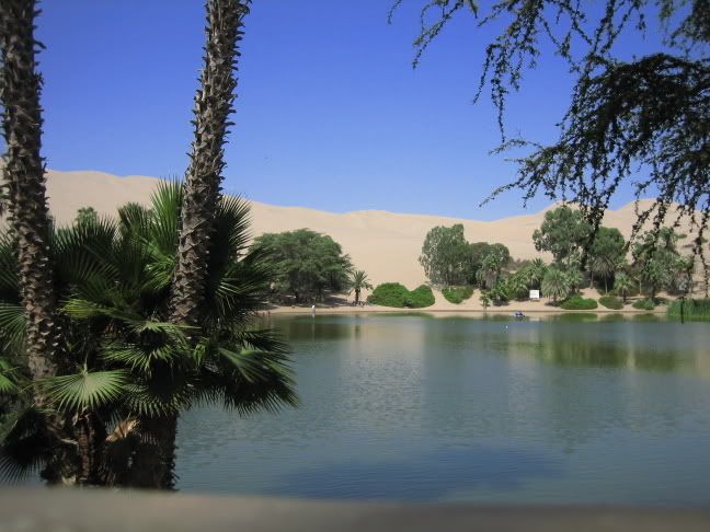 Ma dernière parution venait de Cuenca, Écuateur. 35 heures plus tard, j'etais à Huacachina, tout près d'Ica, Peru. Je me souviens pas si je l'avais dit ou non, mais la côte péruvienne est très désertique. Aucun arbre, que des montagnes de sables. Et bien sur, l'eau, puisque c'est la côte. Obvio.