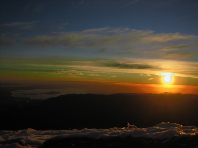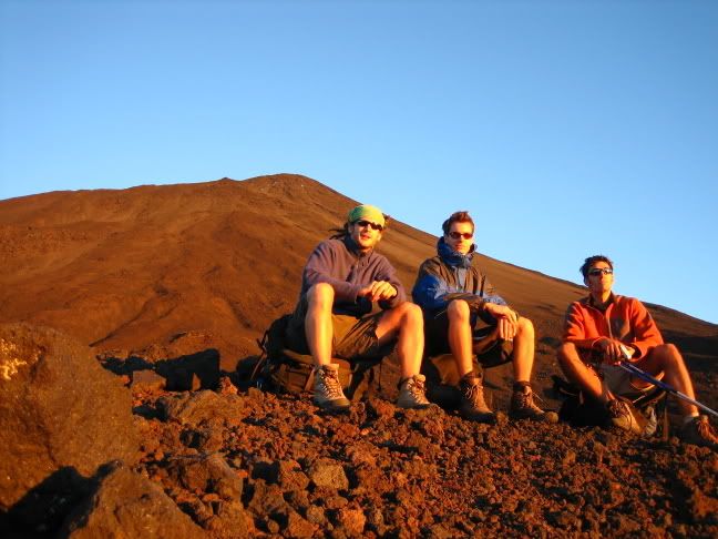 Petite anecdote. Comme on aime ce compliquer les choses, on est parti avec très peu d'eau en se disant qu'on ferait le plein en route. Evidemment, pas un seul riusseau sur tout le volcan. Au menu pour le souper, oeufs cuits dur, pain, mayo sel et poivre. Pas si mal. Pas besoin d'eau. Mais Vince a eu le malheur d'échaper un de ses oeufs par terre. MArc s'exclame alors " Vince, penses-y meme pas, on rassionne l'eau. " Alors , Vince a du licher l'oeuf et recracher le terre jusqu'a temps qu'il soit mangeable. Laissez moi vous dire qu'on a bien rit de sa